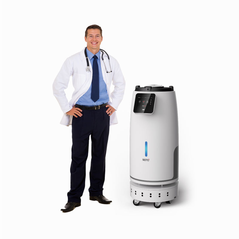 The SOTO-RX pulsed UV sterilizer robot employs xenon lamps to generate pulsed high-energy visible light, infrared radiation, and full-spectrum UV rays in a pulsed form.