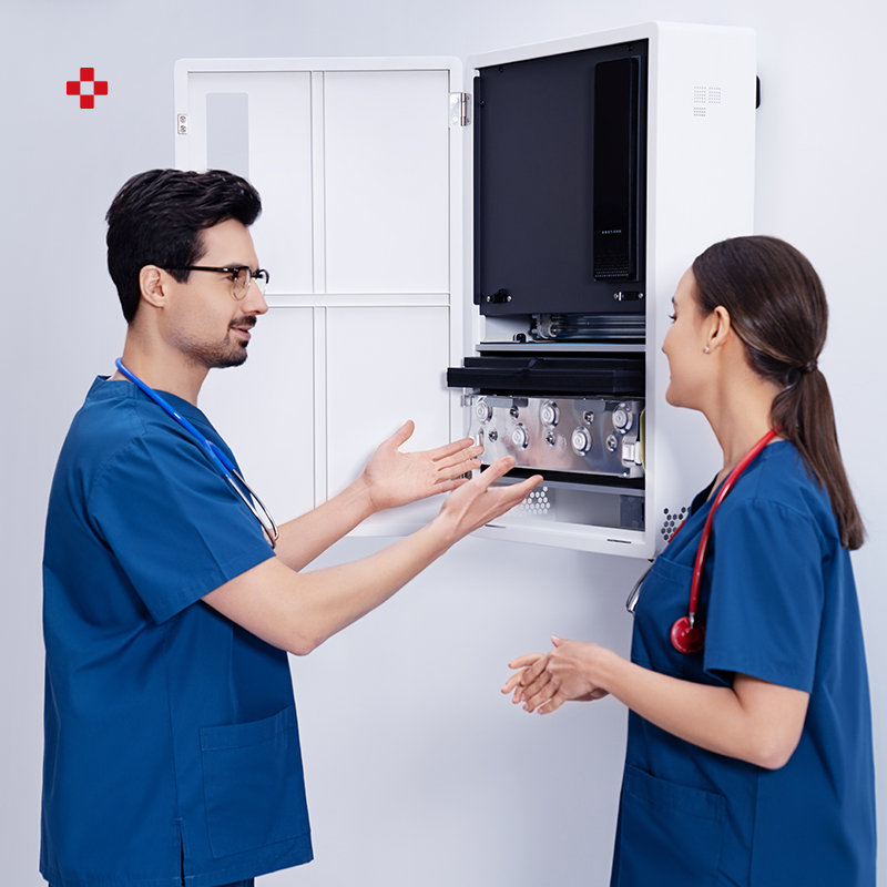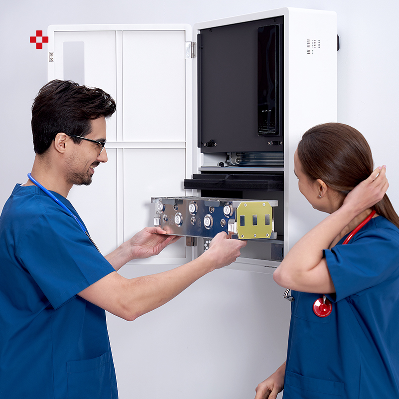 Use the provided key to open the maintenance panel. The electrical power will be automatically cut off to ensure safety when the panel is opened. No tools are needed for routine maintenance.