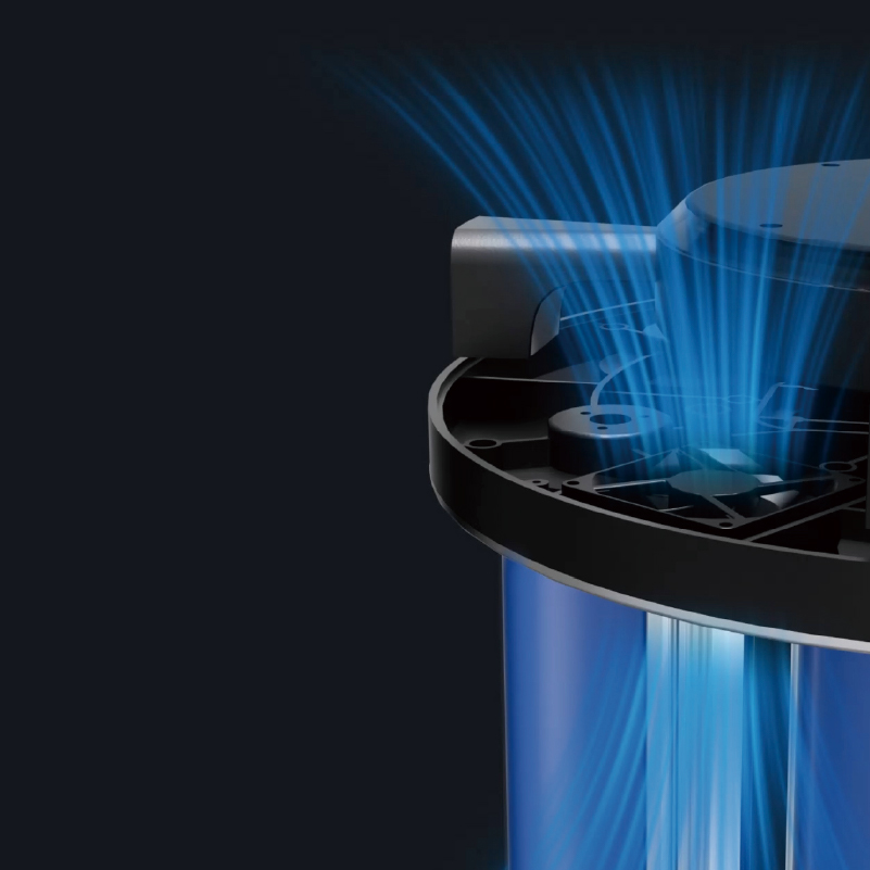 设备顶部配置了三个直流风扇,不仅可有效冷却紫外灯管,还能促进周围空气流动,从而增强杀菌消毒效果。