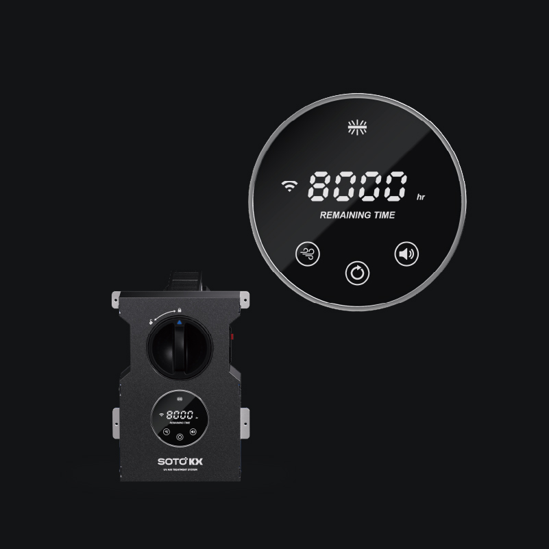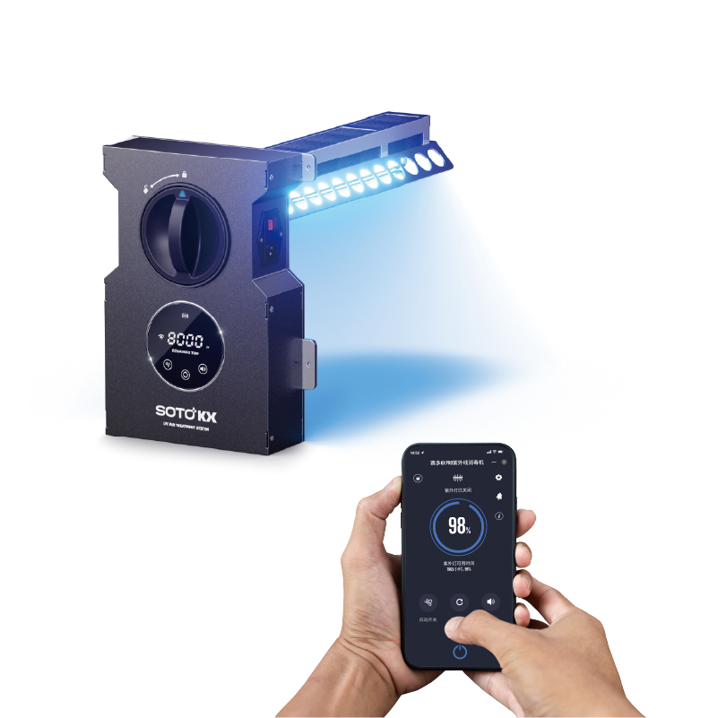 The SOTO-KX PRO UV air treatment system is integrated into the HVAC system, effectively eliminating various types of pathogens and interrupting the transmission pathways of pathogenic microorganisms. Equipped with a smart control system and mobile App functionality, the system demonstrates high efficiency and intelligent design.